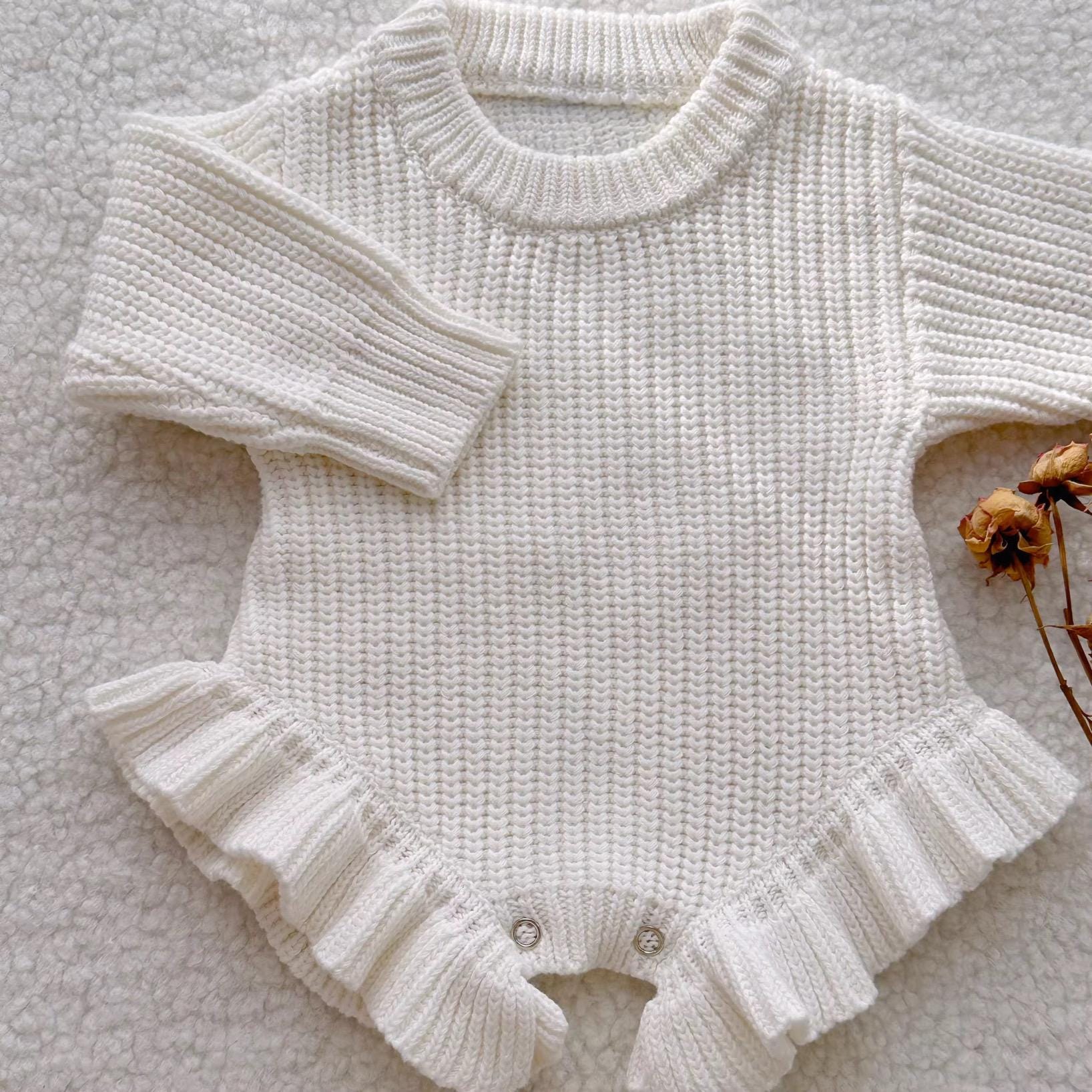 BLANKS Ruffle Knit Baby Onesie, Custom Baby Girl Knit Romper
