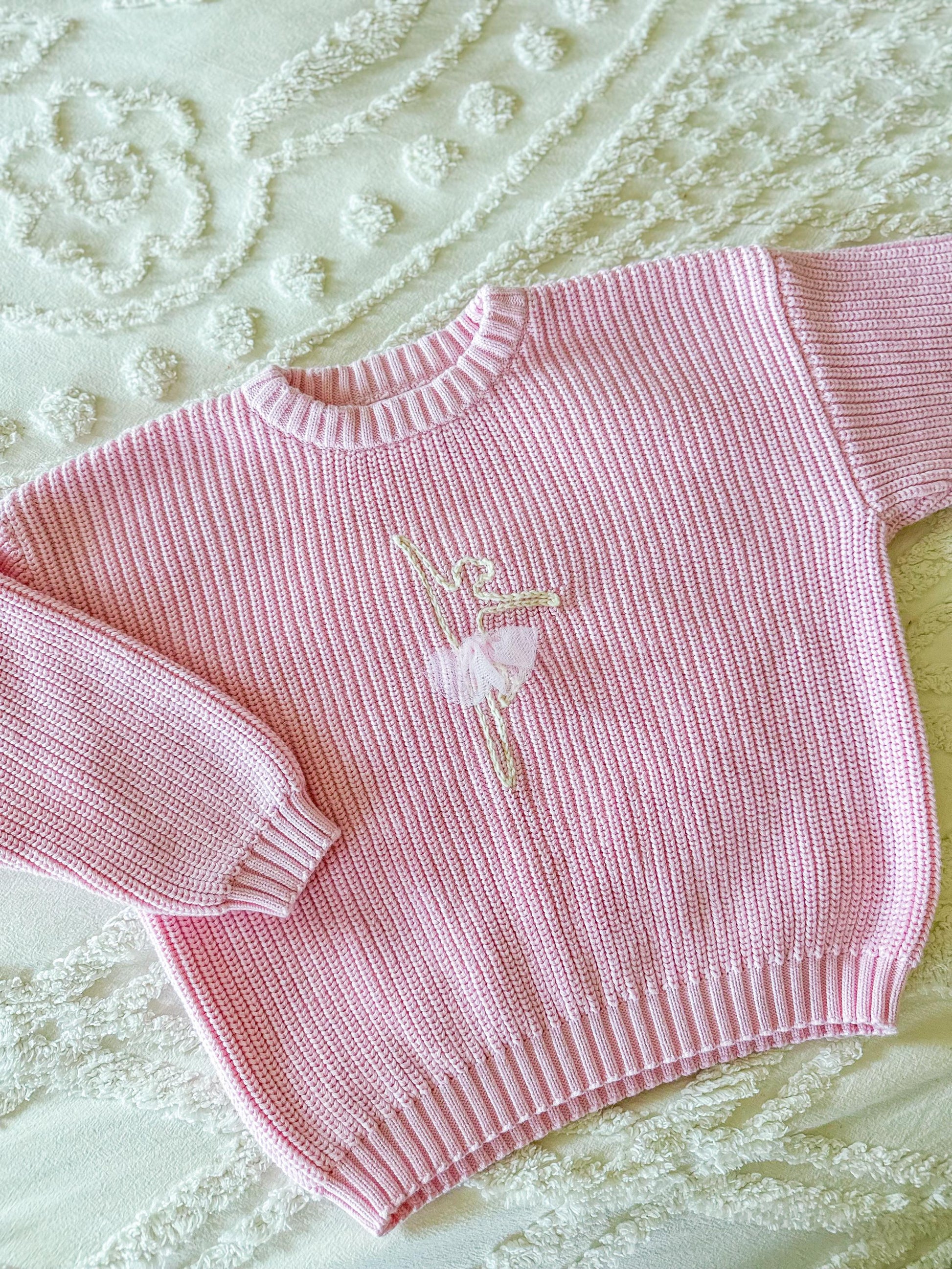 Embroidered Pink Ballerina Sweater, Ballet Sweater baby and toddler Sweater