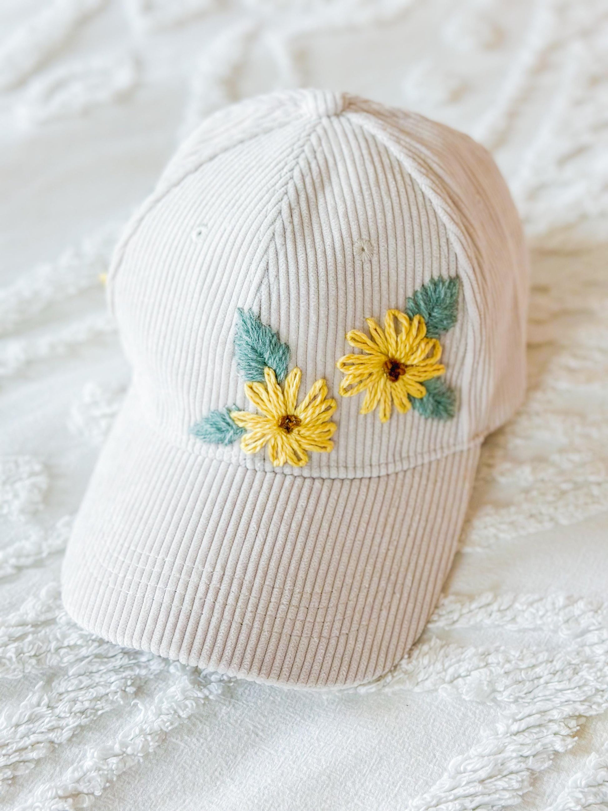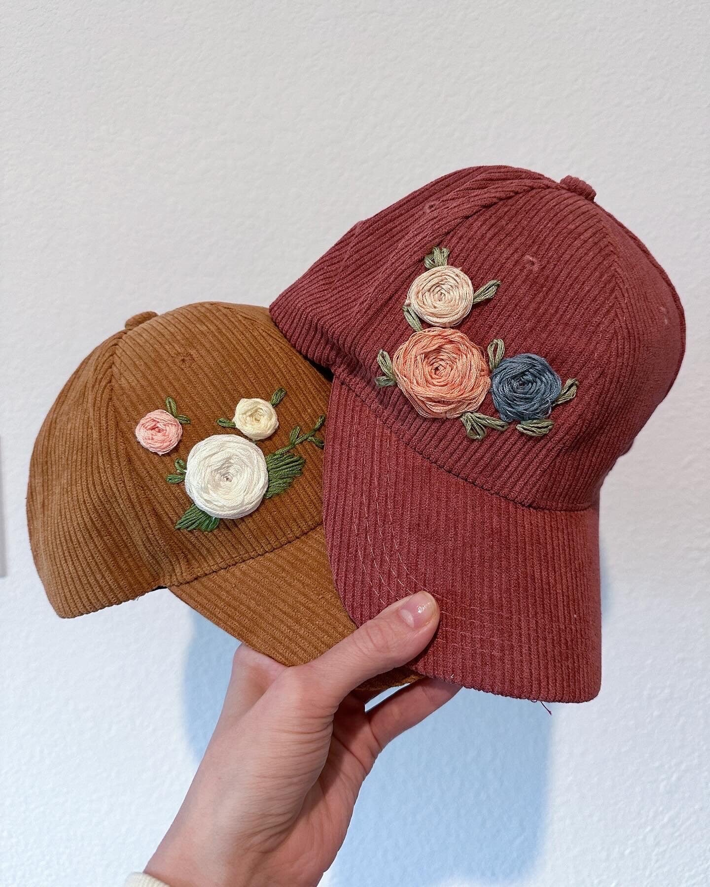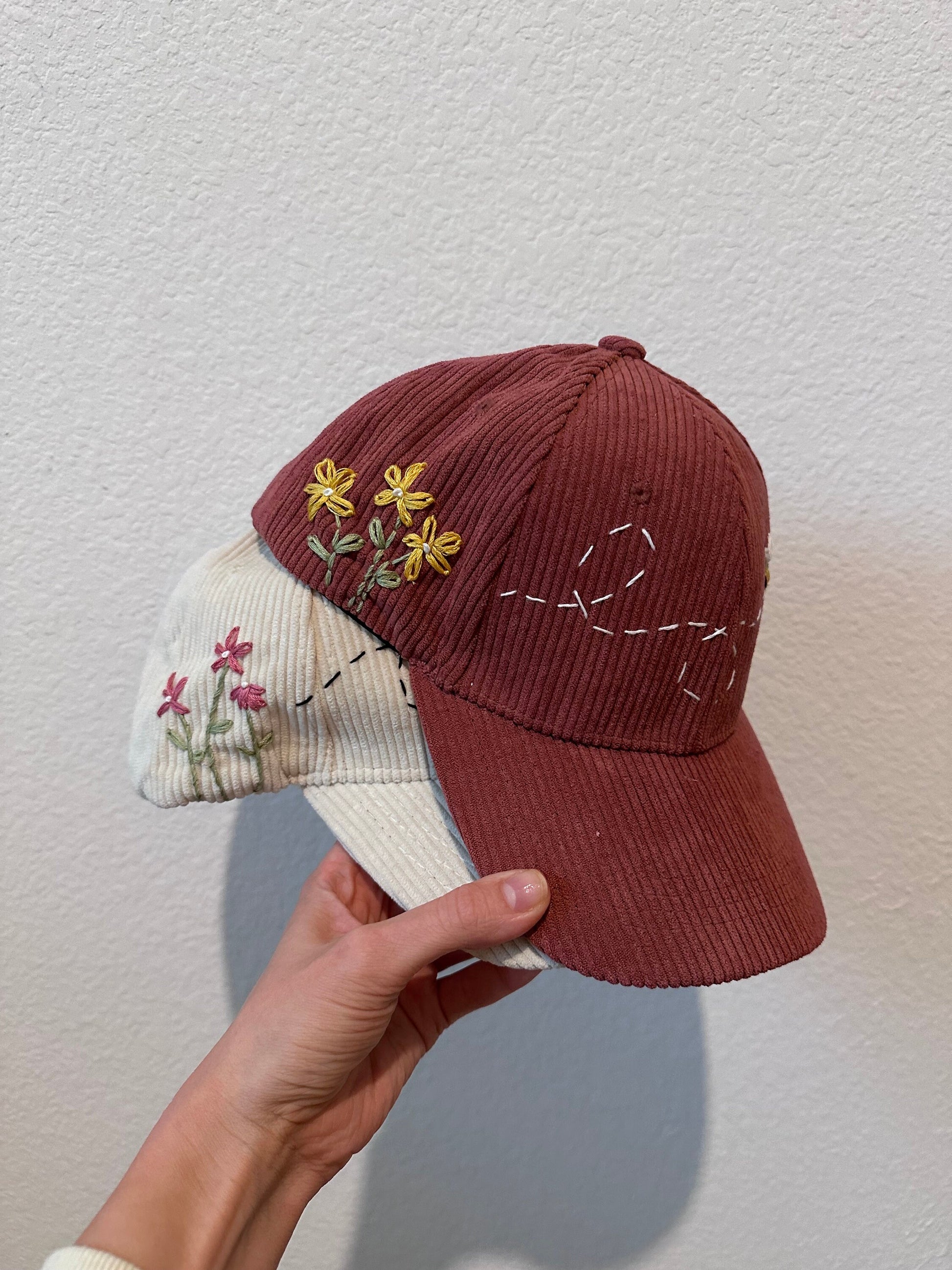 The perfect little accessories to your summer fits. customizable hand embroidered corduroy hats - choose from current designs of bees, roses, or sunflowers and mix with your favorite hat color. these make the cutest gifts for Mother’s Day, birthdays, special events or just because!