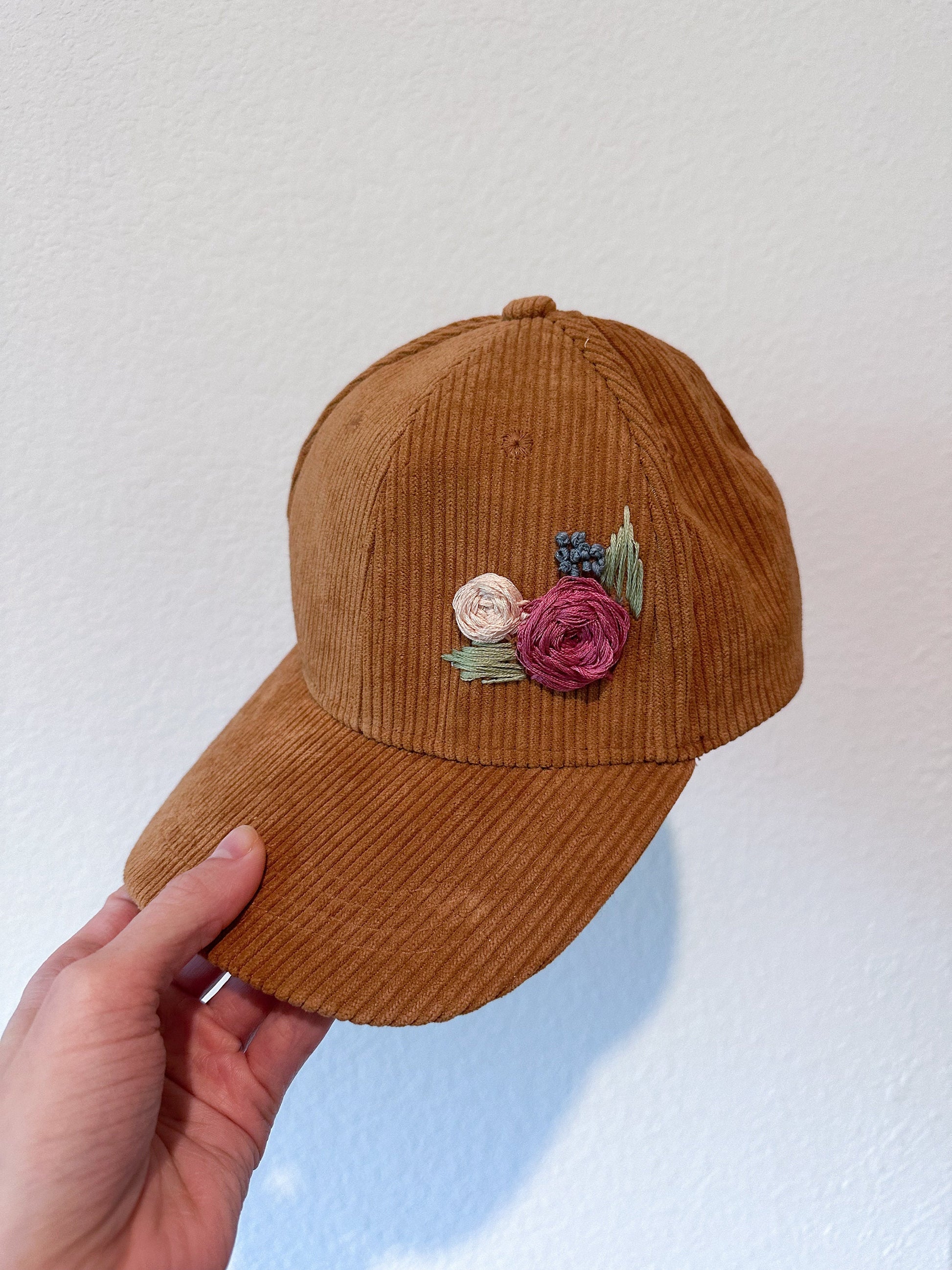 Embroidered women’s hat - hand embroidered - girls hat - corduroy hat