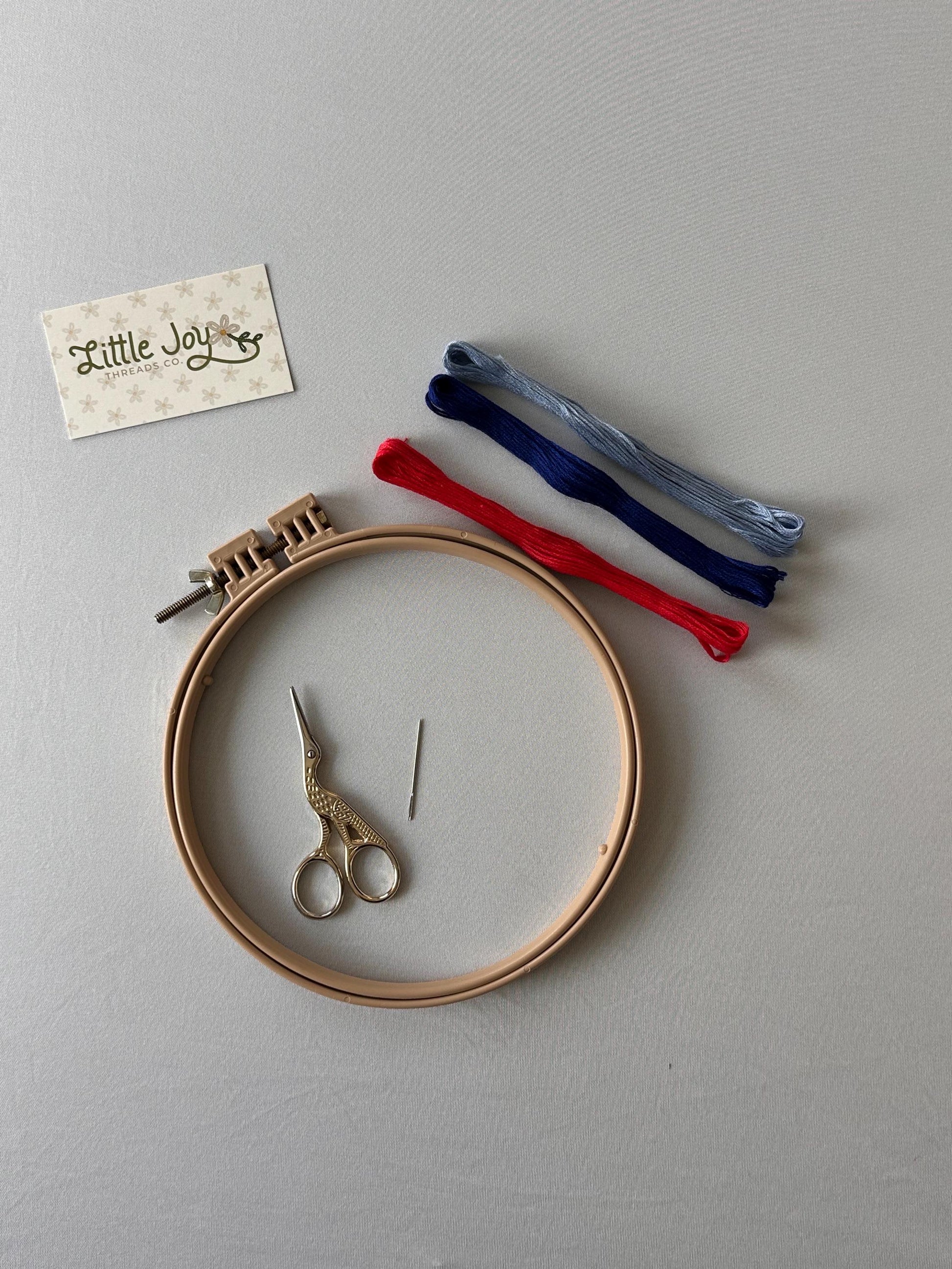 EMBROIDERY KIT American Bow Flag - Tutorial and DIY embroidery kit - hand embroidery pattern & blueprint
