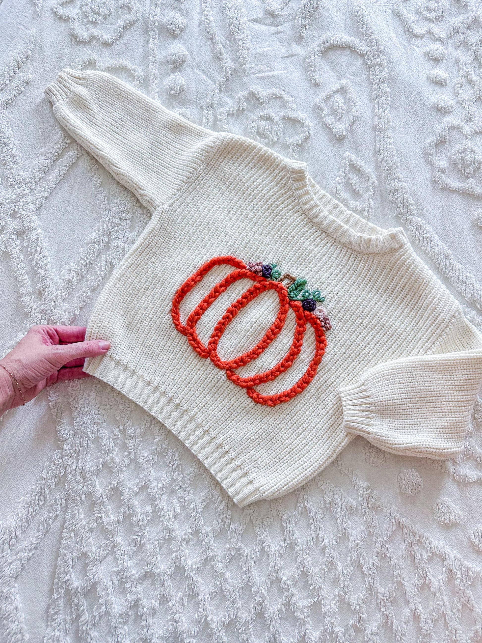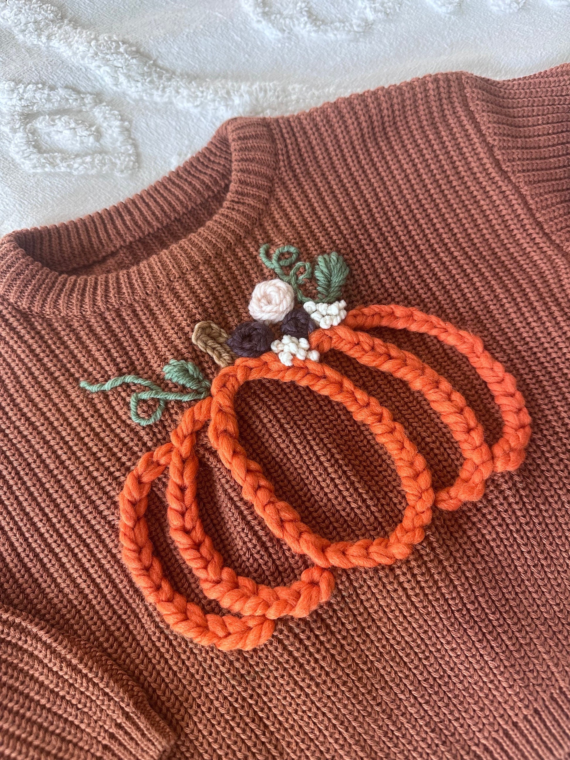 Pumpkin Hand-Embroidered Heavy Knit Sweater