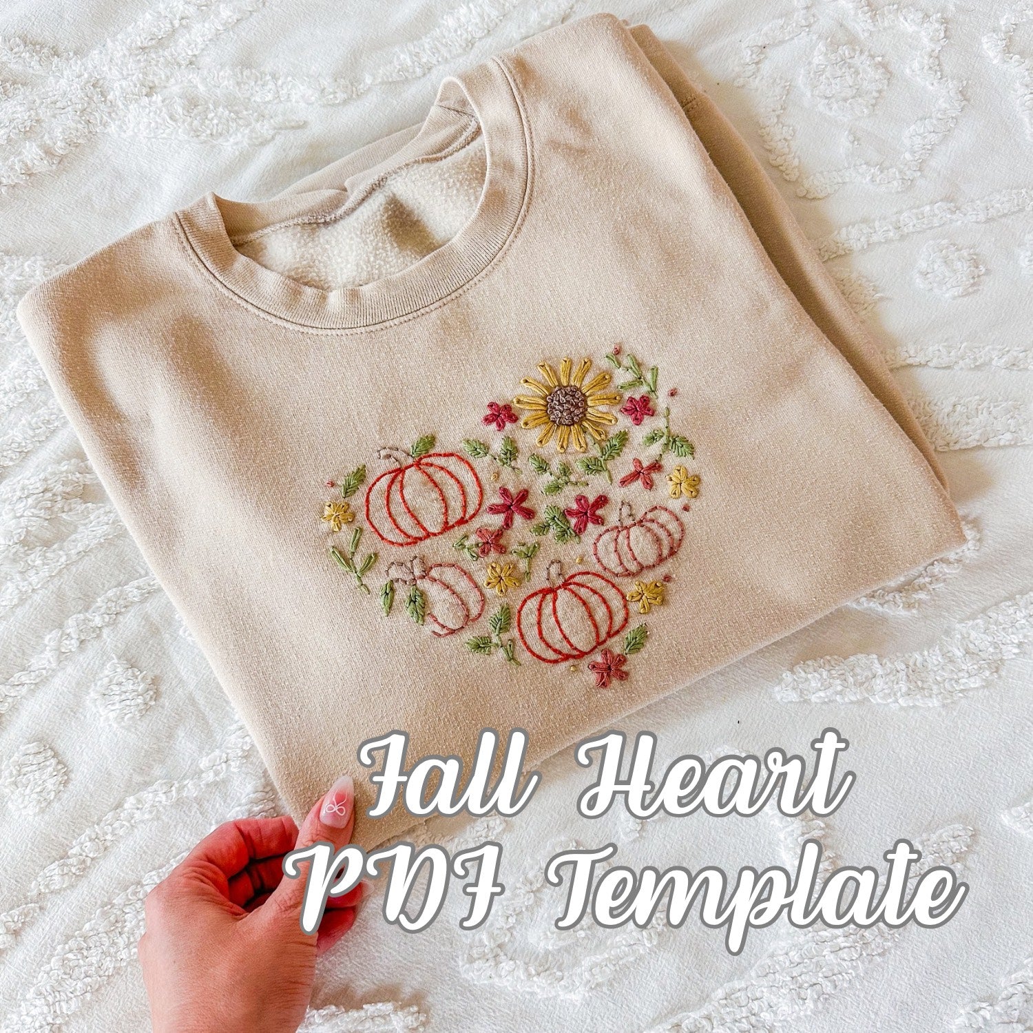 This listing is for the downloadable PDF for the fall heart template design. This includes three downloads; PDF template, Recommended stitches, and tips & tricks guide. Image is 7x7".
