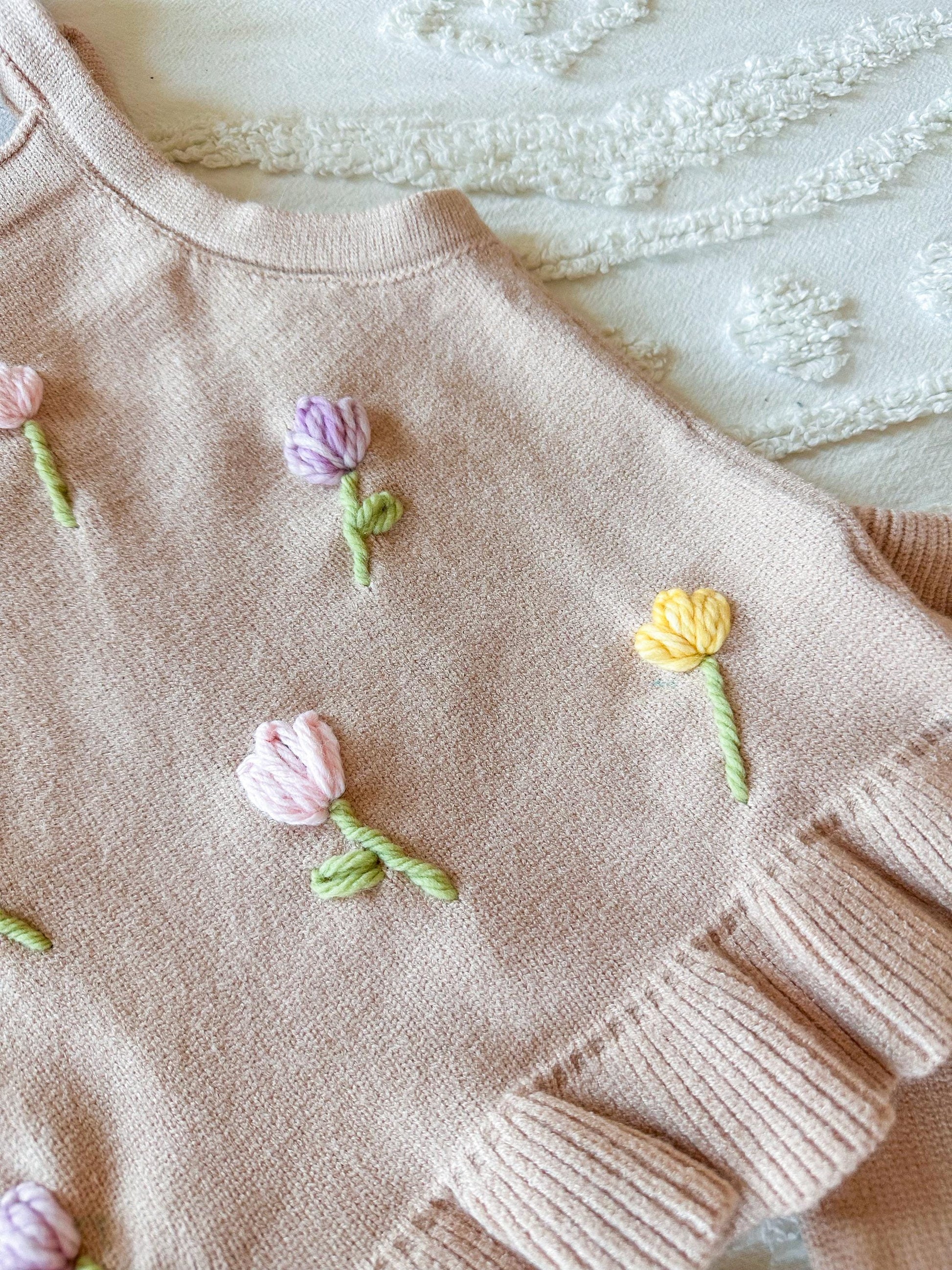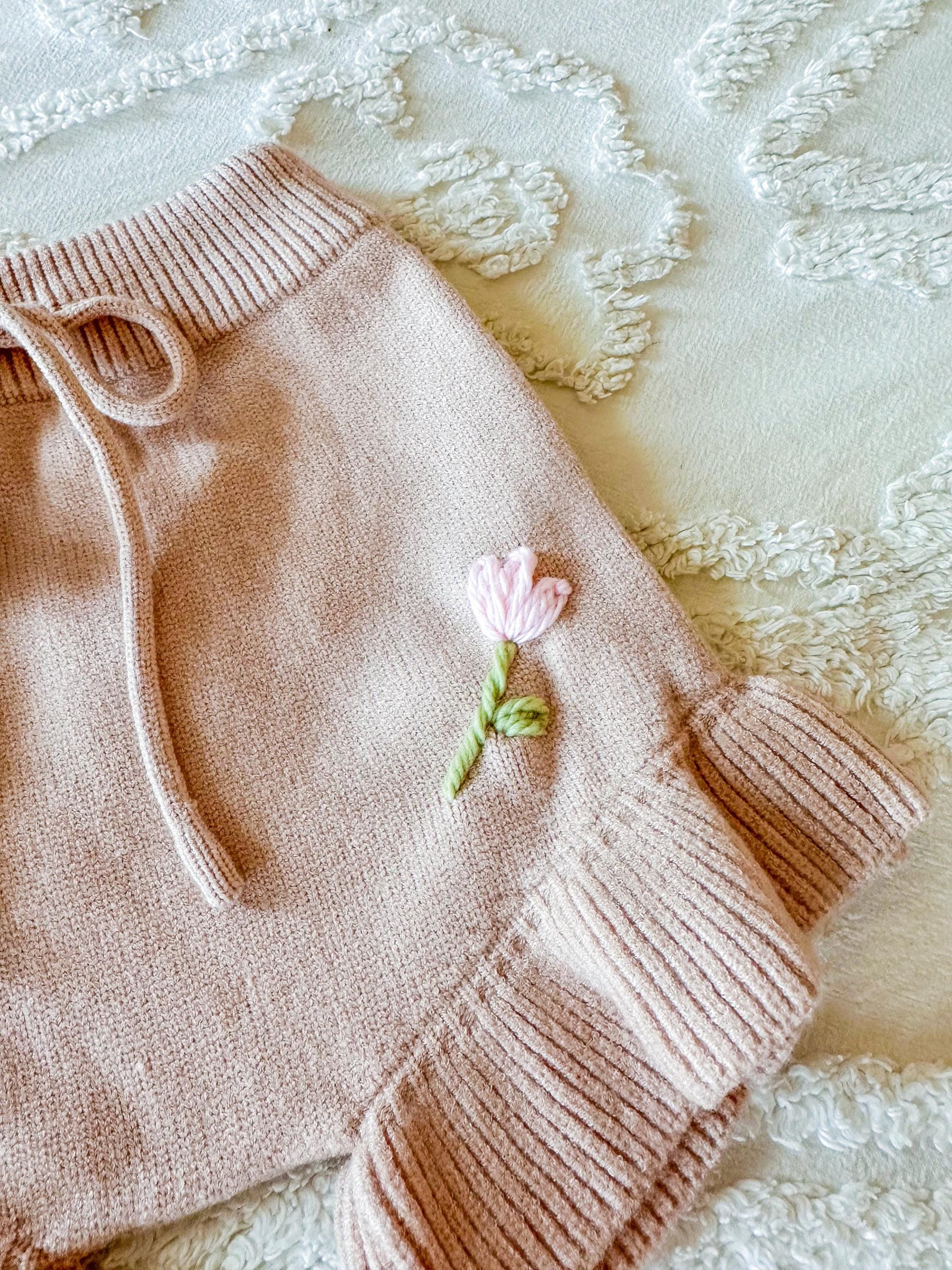 This adorable baby and toddler spring/summer set features hand-embroidered Tulips and featured spring colors. Set comes with ultra soft tank and shorts with adjustable tie straps and drawstring waist. Yarn colors are customizable as well as any other floral request substitutions (roses, daisy, etc). If you would like this set but another design that is not florals please DM me. Names can be added to this design - please add the custom design add on listing to your cart for name addition.